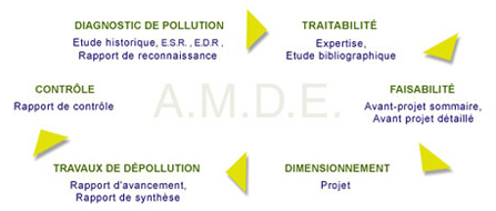 Depuis sa création, la société AMDE a exercé ces compétences dans plusieurs secteurs d’activité : groupes pétroliers, concessions automobiles, promoteur immobilier, établissements publics (ADEME), collectivités, établissements militaires, usines chimiques, décharges/déchetteries, fonderie, traitement de surface, récupération des métaux, traitement du bois/scieries, grande distribution, verrerie, tannerie,…